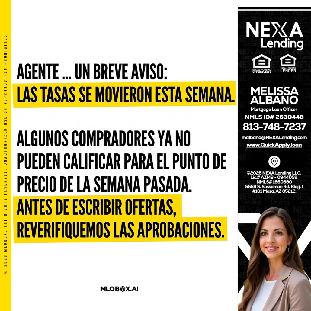 Hi, my name is Melissa Albano. I’m a Loan Officer with NEXA Lending LLC., offering personalized mortgage solutions, fast customized quotes, great rates and service with integrity.