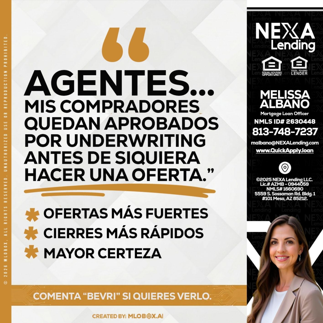 Hi, my name is Melissa Albano. I’m a Loan Officer with NEXA Lending LLC., offering personalized mortgage solutions, fast customized quotes, great rates and service with integrity.