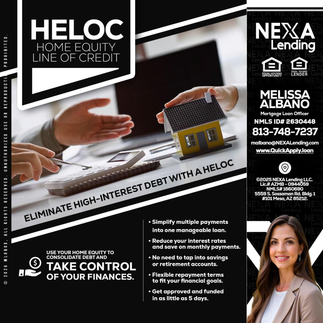 Hi, my name is Melissa Albano. I’m a Loan Officer with NEXA Lending LLC., offering personalized mortgage solutions, fast customized quotes, great rates and service with integrity.