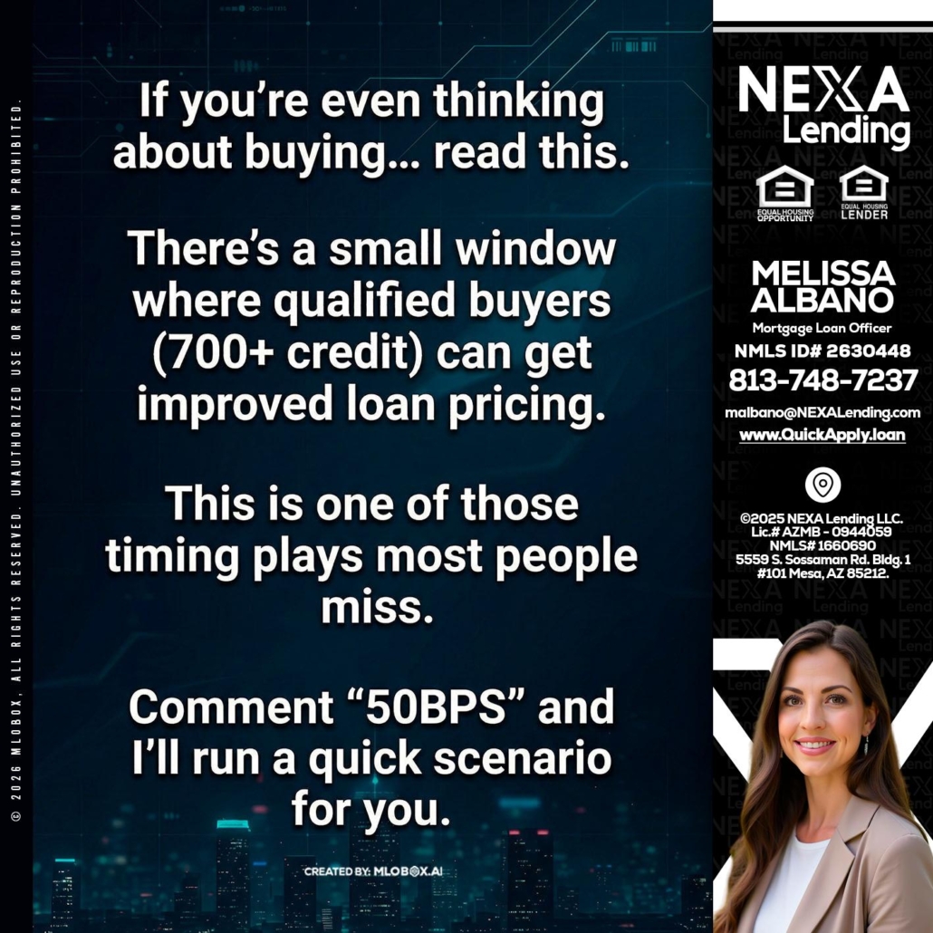 Hi, my name is Melissa Albano. I’m a Loan Officer with NEXA Lending LLC., offering personalized mortgage solutions, fast customized quotes, great rates and service with integrity.