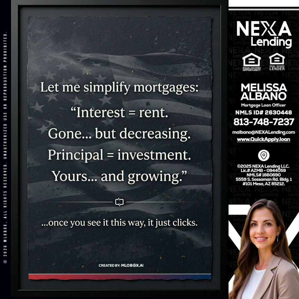 Hi, my name is Melissa Albano. I’m a Loan Officer with NEXA Lending LLC., offering personalized mortgage solutions, fast customized quotes, great rates and service with integrity.