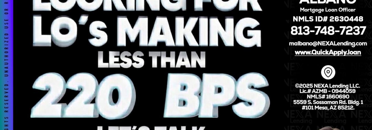 LOOKING FOR - Melissa Albano -Mortgage Loan OfficerHi, my name is Melissa Albano. I’m a Loan Officer with NEXA Lending LLC., offering personalized mortgage solutions, fast customized quotes, great rates and service with integrity.