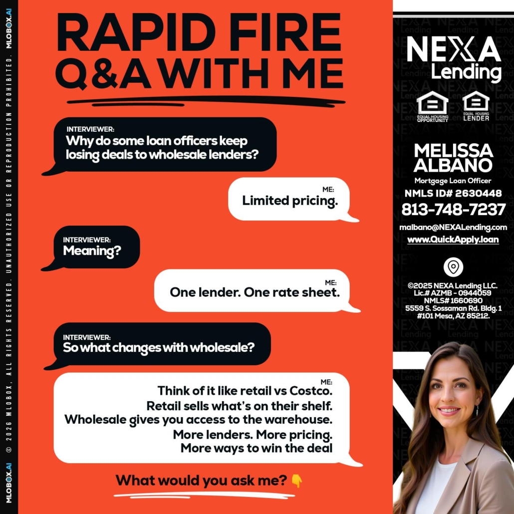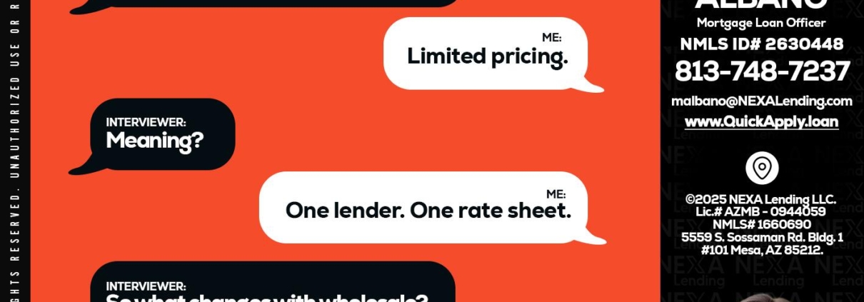 Hi, my name is Melissa Albano. I’m a Loan Officer with NEXA Lending LLC., offering personalized mortgage solutions, fast customized quotes, great rates and service with integrity.
