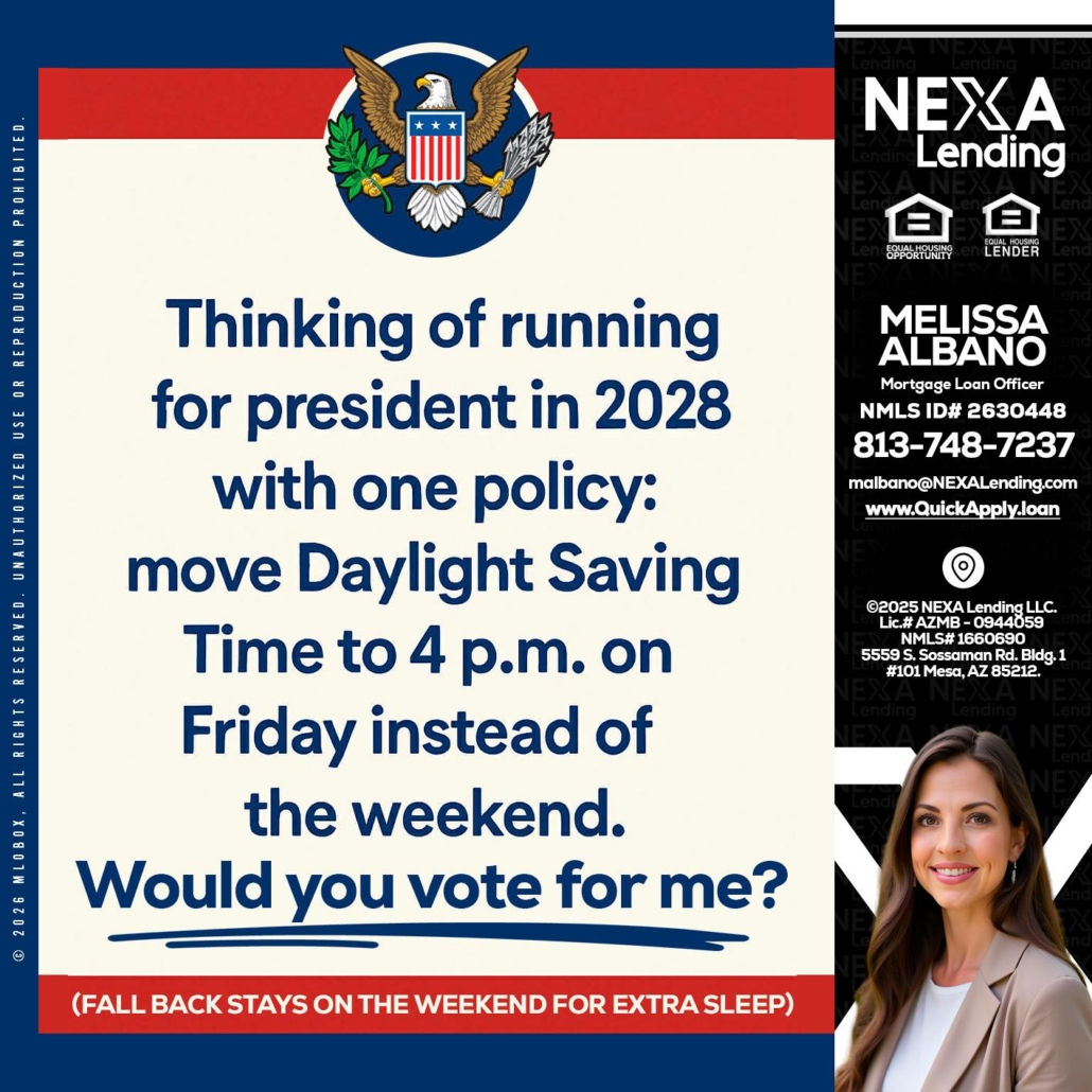 THINKING OF RUNING - Melissa Albano -Mortgage Loan OfficerHi, my name is Melissa Albano. I’m a Loan Officer with NEXA Lending LLC., offering personalized mortgage solutions, fast customized quotes, great rates and service with integrity.